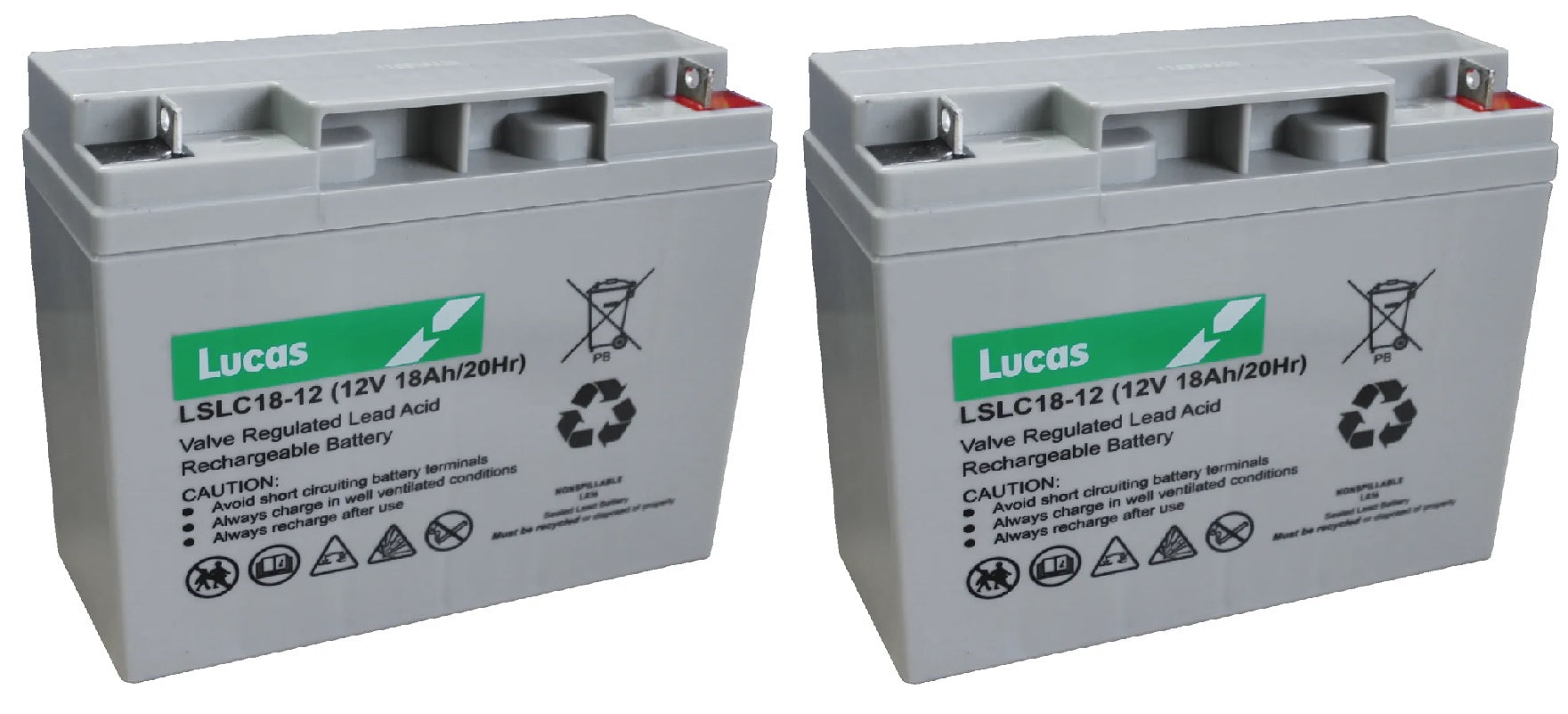 Pair of two Lucas LSLC18-12 12V 18Ah Sealed AGM Deep Cycle Battery Maintenance-Free VRLA Power for Mobility, UPS & Backup Systems